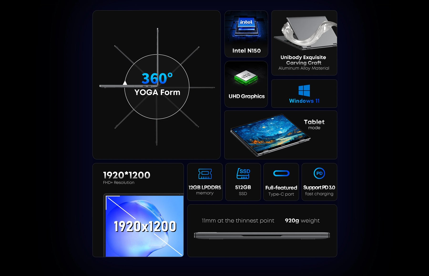 MiniBook X comes equipped with a full-featured Type-C port for easy expansion