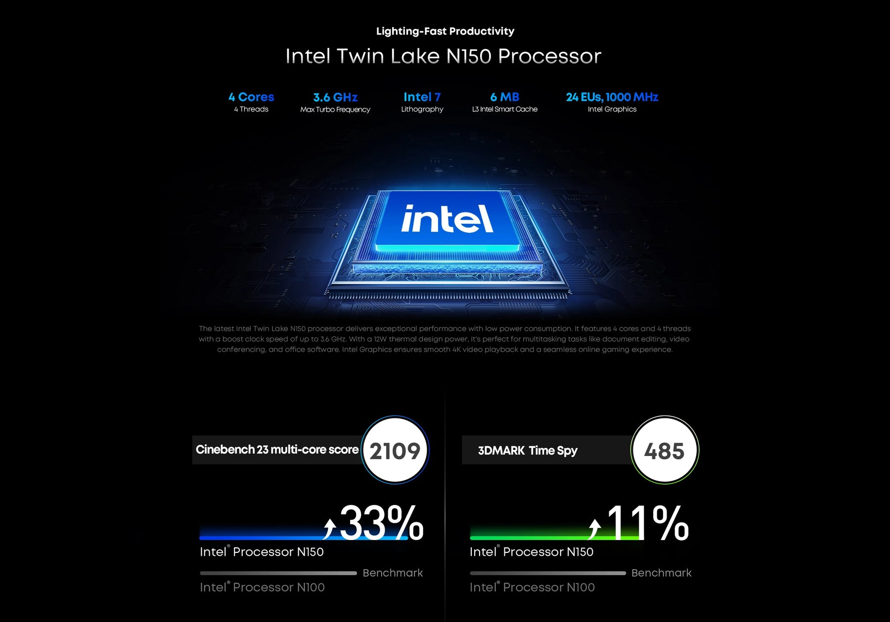 Latest generation Intel Alder Lake-N150processor with 10nm process, high