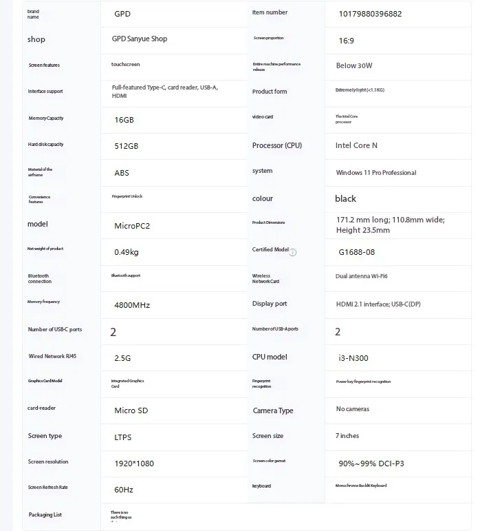 GPD Model: GPD MicroPC 2 2025