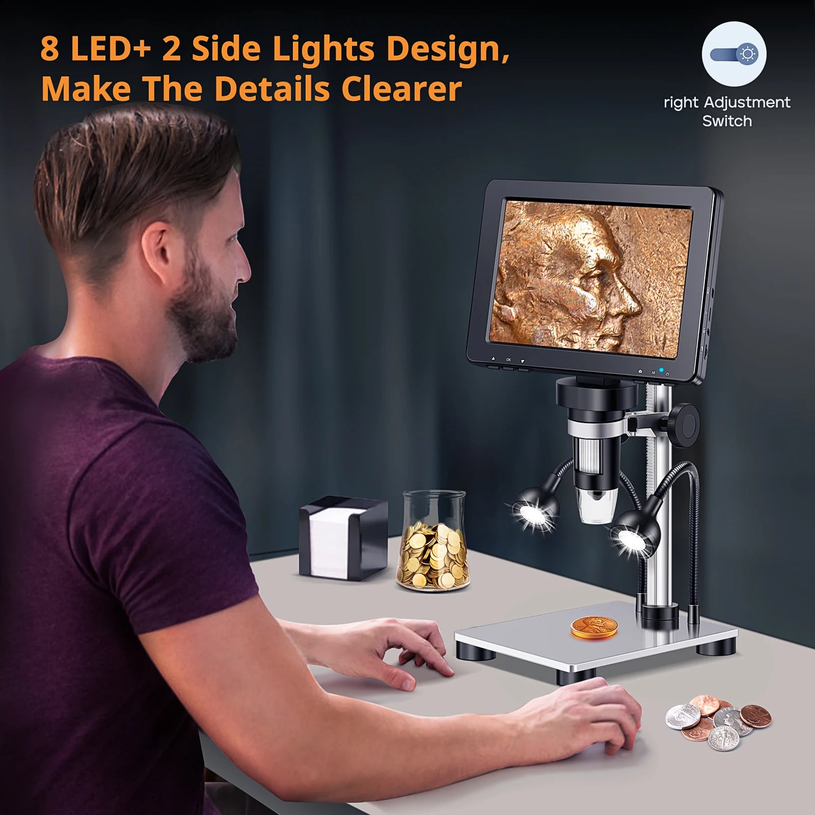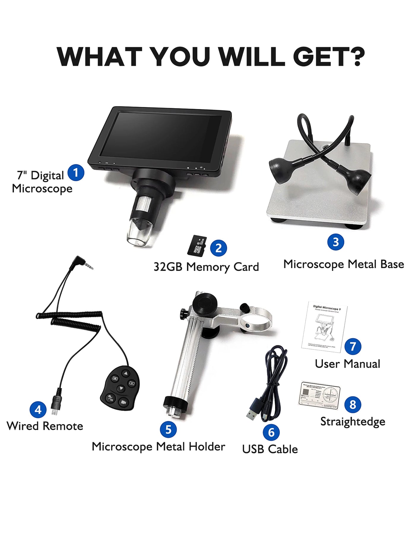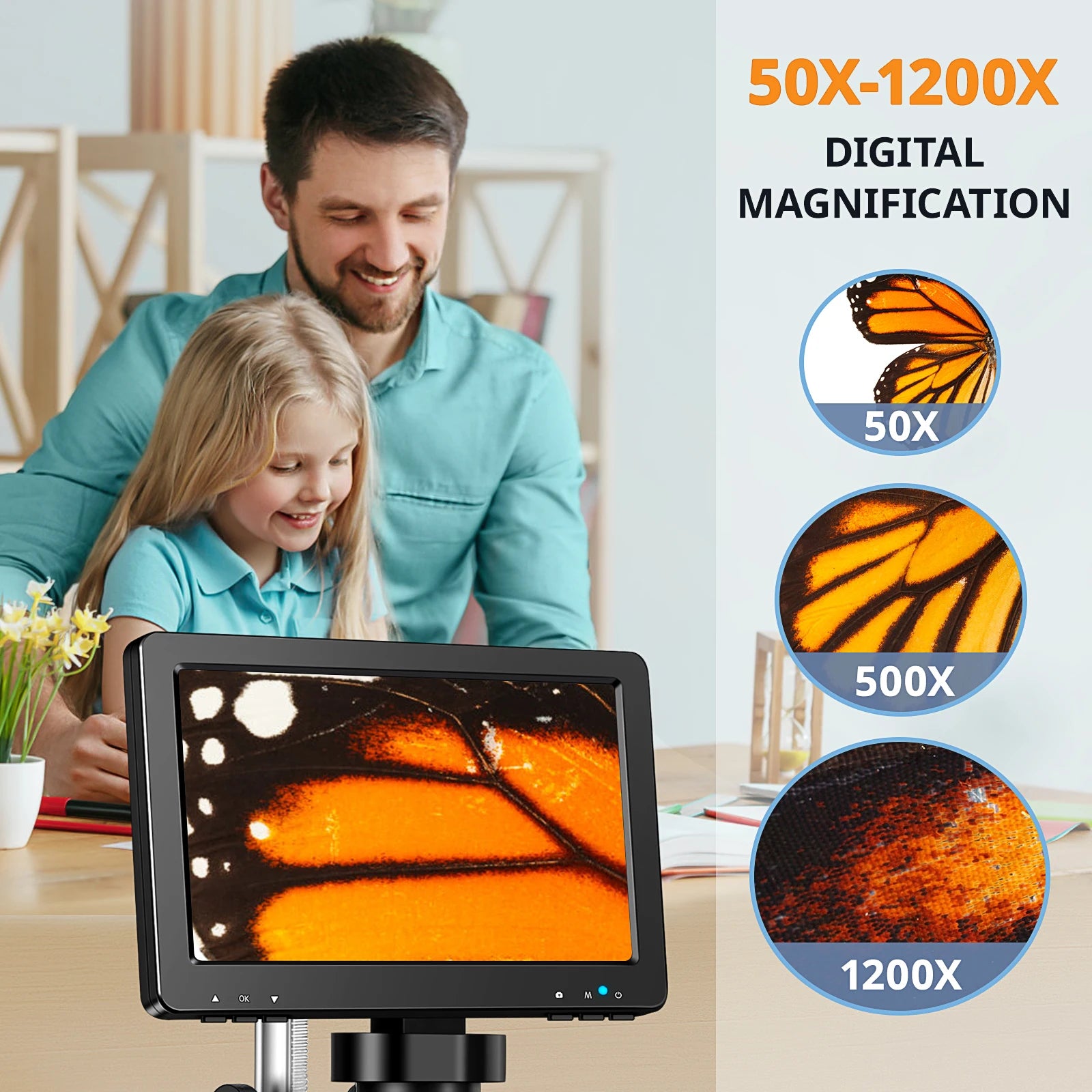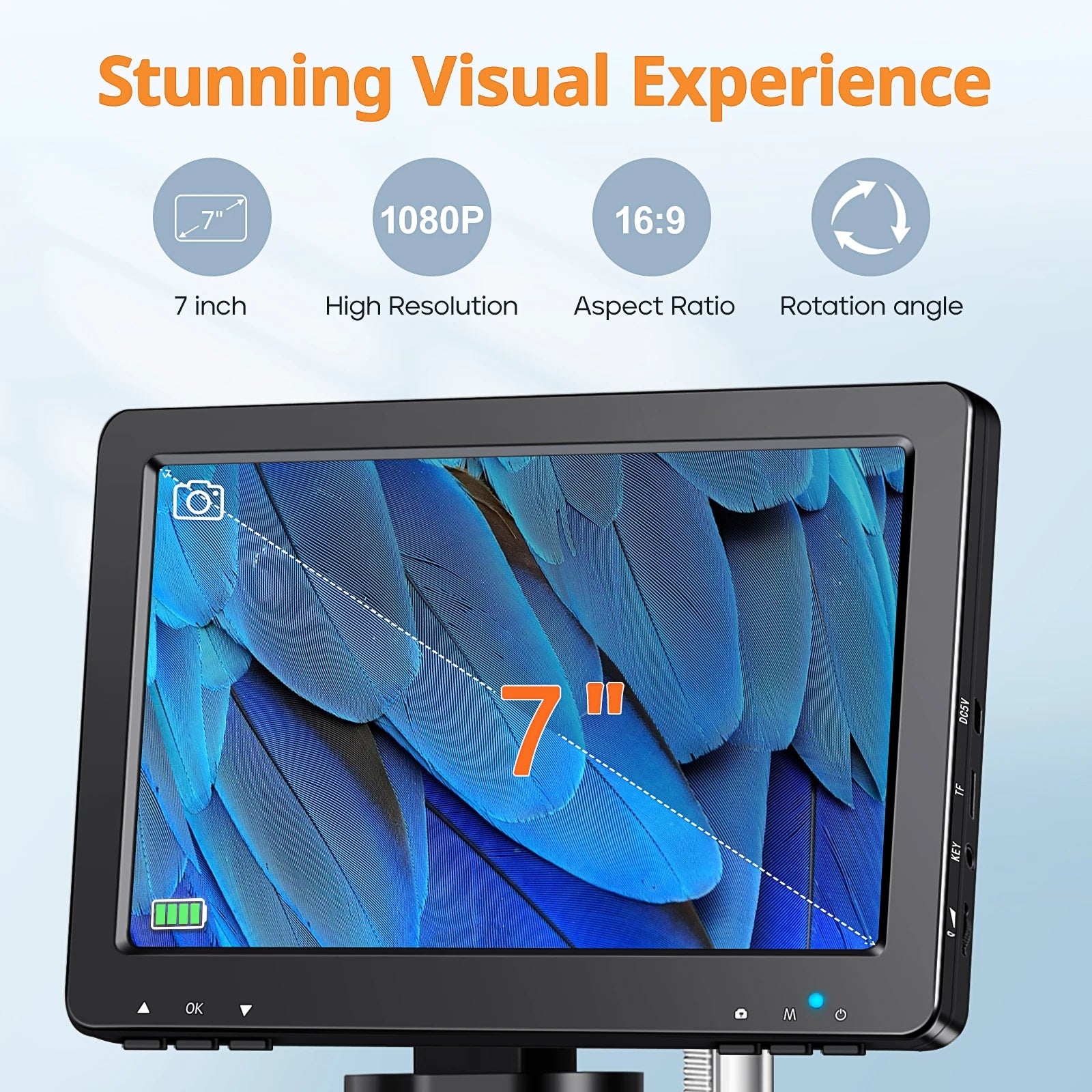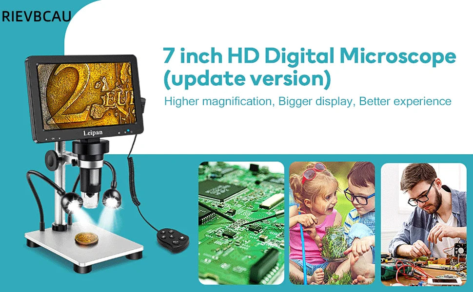 RIEVBCAU 7 inches large HD LCD screen,Up to 1200x magnification provides a broad field of view for easy viewing. The large screen allows you to quickly adjust the image and instantly view,Large screen with adjustable angle will give you a better visual experience.