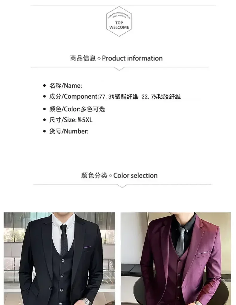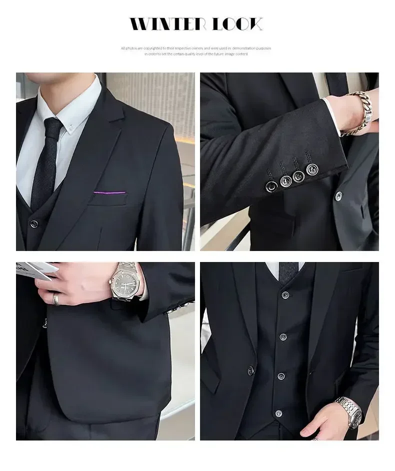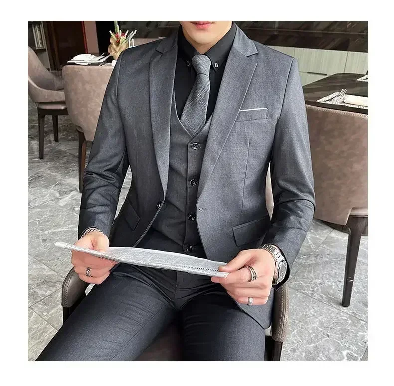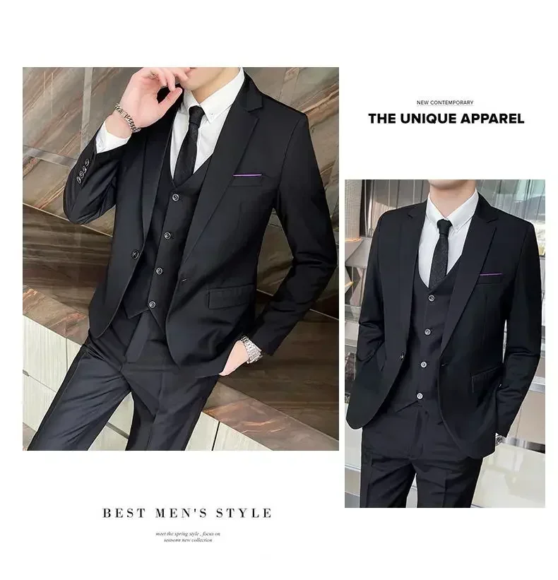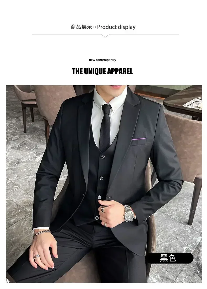 S-9XL New (Blazer+Vest+Pants) Men's Fashion Business Gentleman Professional Formal Dress Korean Version Banquet Dress Suit 6XL