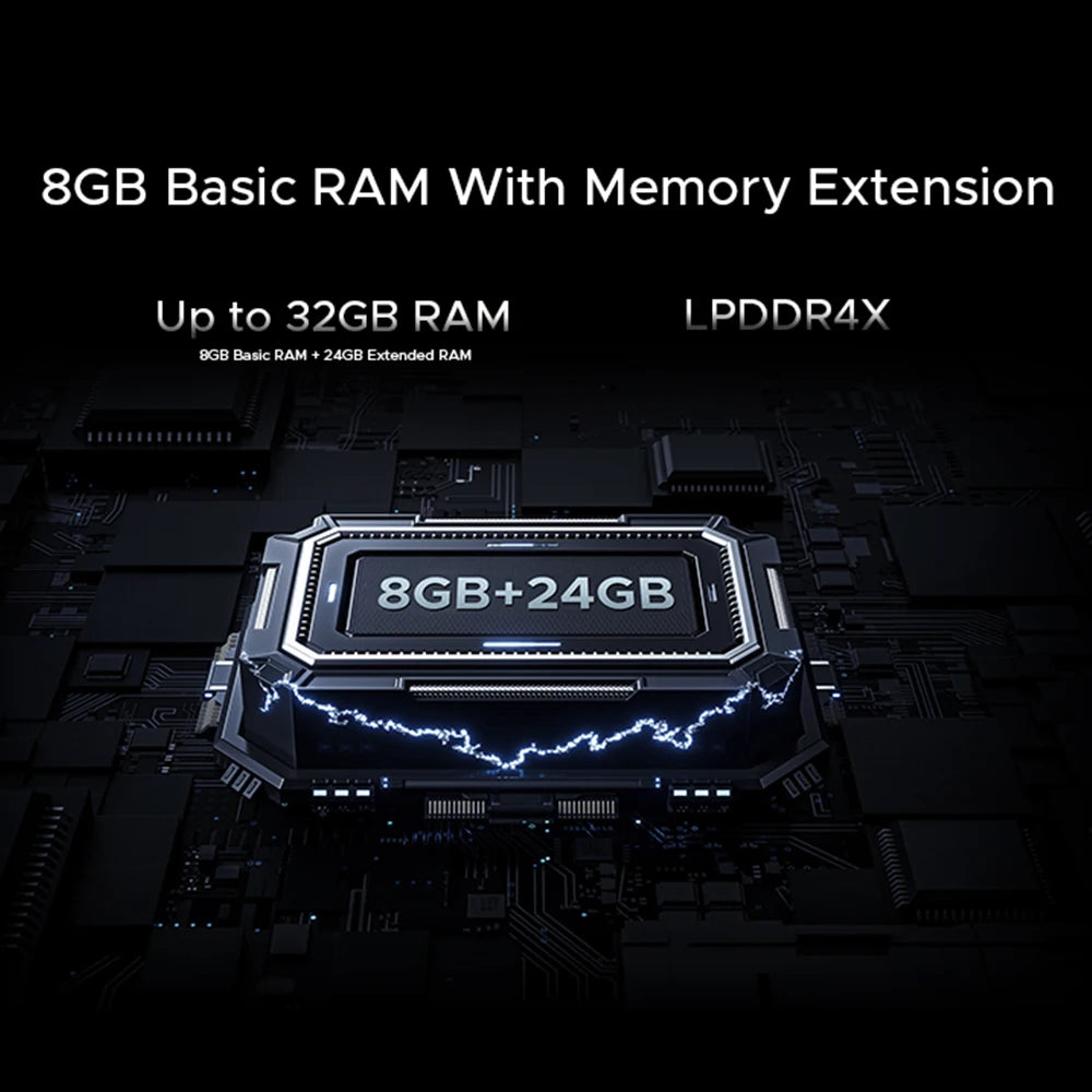 32GB RAM(8GB+Up to 24GB Extended RAM) / LPDDR4X+128GB ROM / uMCP |