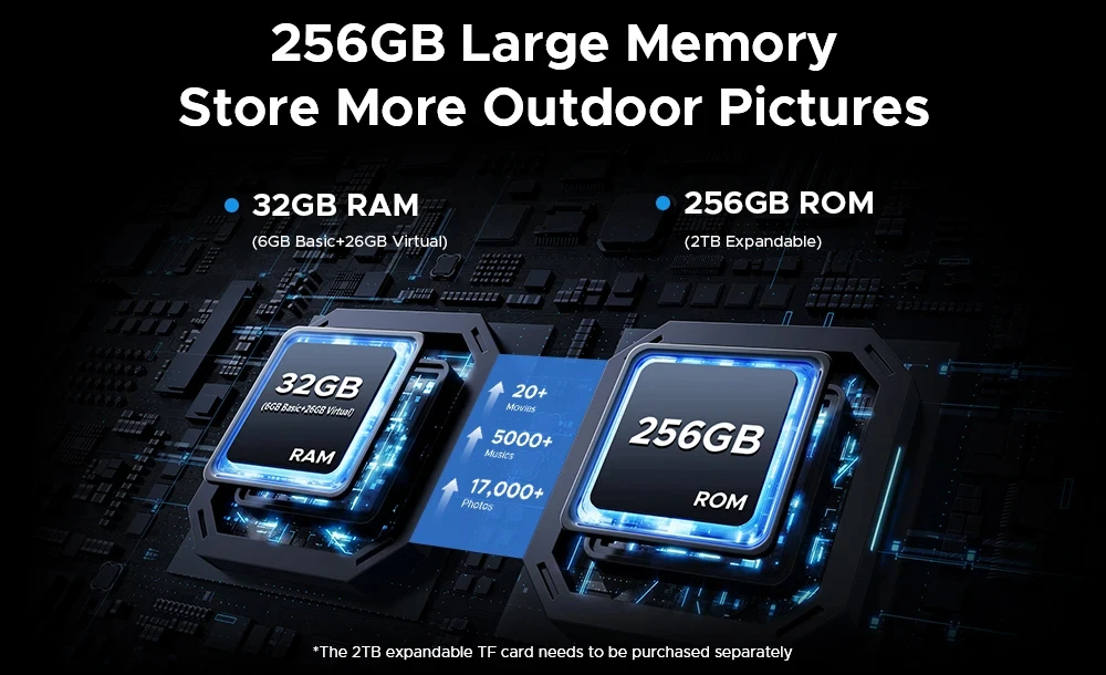 32GB RAM (6GB+Up to 26GB Extended RAM) / 256GB ROM