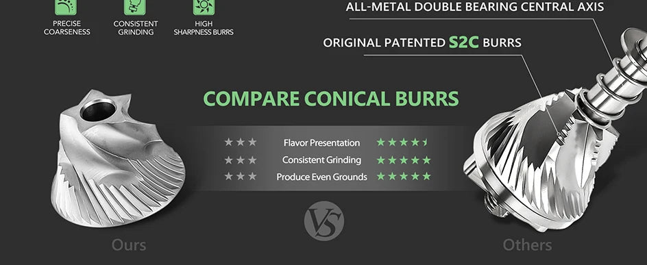 • UPGRADED VERSION OF C3: Share the same size but upgraded with new S2C steel burrs adopted from the Chestnut X in a smaller 38mm size, New released TIMEMORE CHESTNUT C3S PRO, C3ESP PRO has better cutting performance, ensuring your coffee beans taste their best by consistently and swiftly ground.