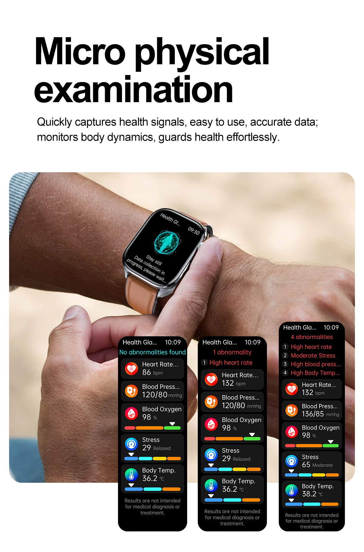 Dear friend, this is a new one from our storeElectrocardiogram + micro-physical examination high-end health management watchHe has the function of "five-organ health management" that is not available on the market,He also has independent and accurate blood oxygen, body temperature, ECG, breathing rate, blood pressure, heart rate, blood oxygen, uric acid,And he also has a powerful one-click micro-physical examination function, an AI Health diagnosis smartwatch.Everyone is welcome to come and buy