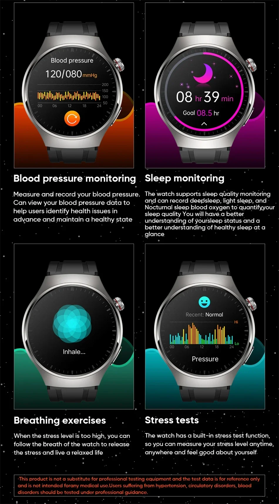 4. Health monitoring of body temperature, non-invasive blood glucose, sleep, blood pressure, heart rate, stress, etc