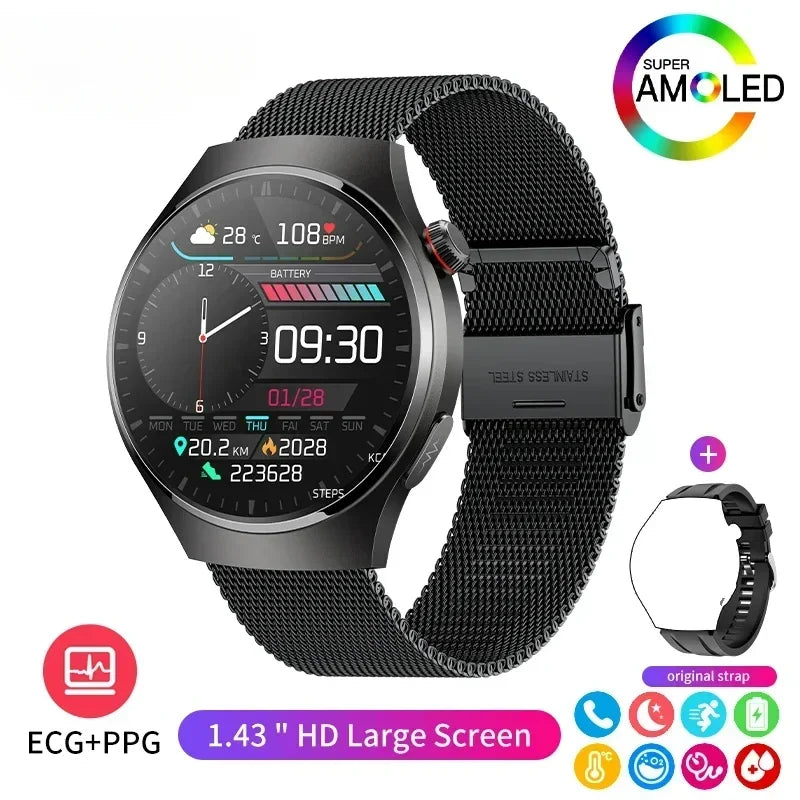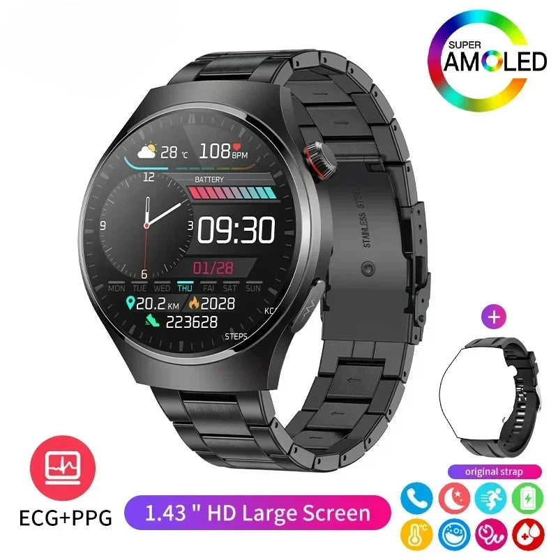 Bluetooth call, electrocardiogram, ECG+PPG, temperature monitoring, blood sugar monitoring, health monitoring, sleep monitoring, remote family and friend care, call rejection