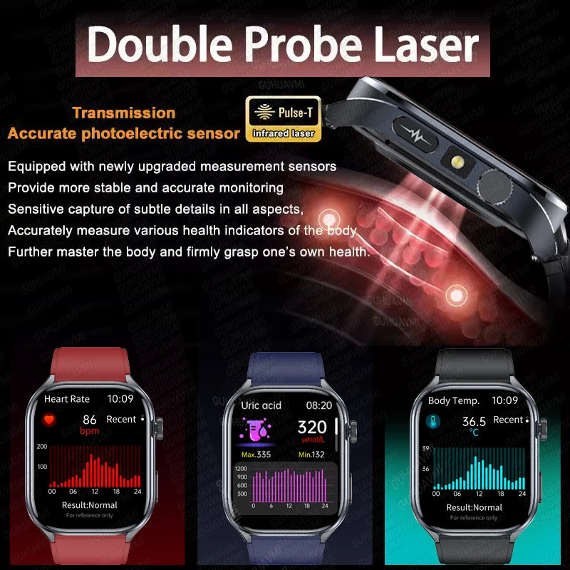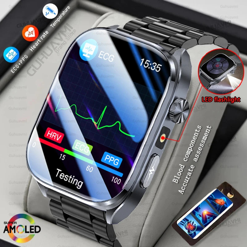 2025 New ECG+PPG Clock Women Men Uric Acid Blood Pressure Blood oxygen Body Analysis Body Fat BT Call LED Flashlight Smartwatchs