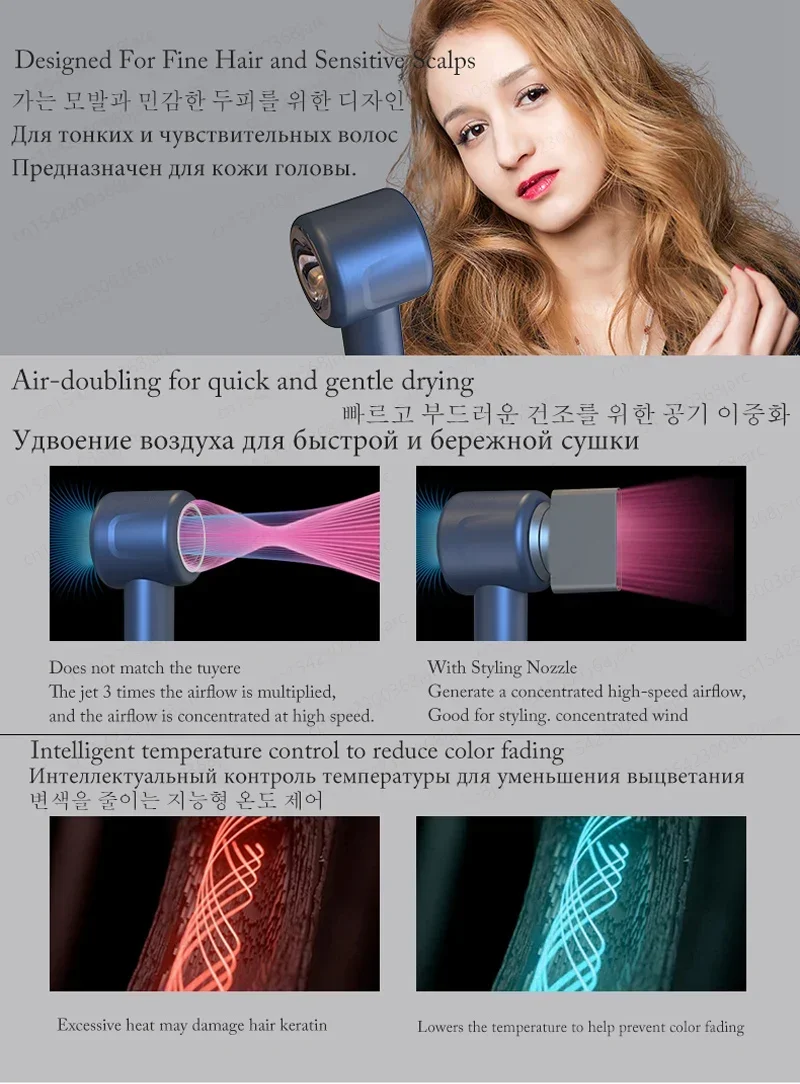 1.Negative Ion Function: The anion generator of the hair blow dryer produces millions of negative ions to protect your scalp from heat damage,smooth hair.