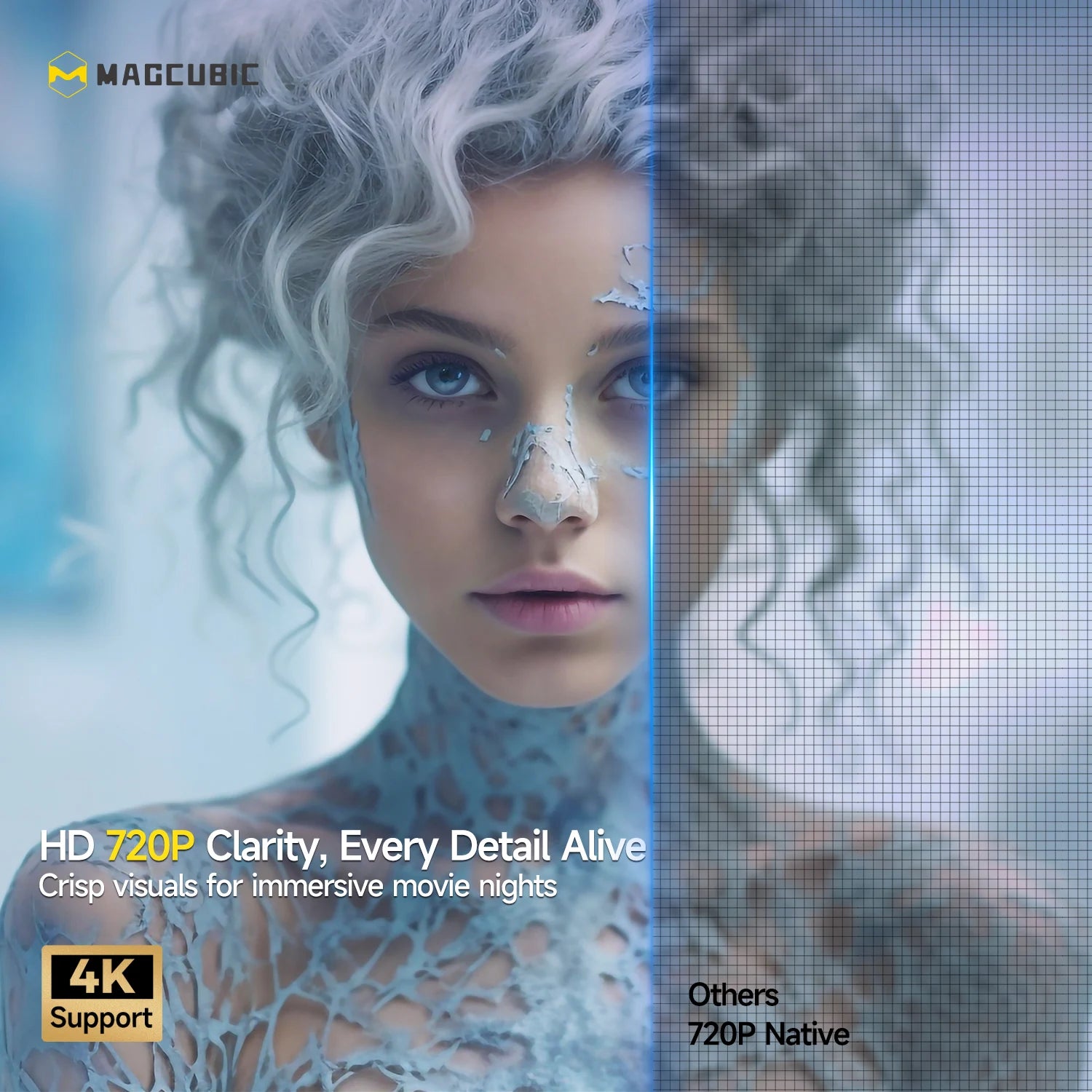 Magcubic HY300X Projector 4K is equipped with electric focus and auto vertical keystone correction. The remote uses the latest infrared high-precision sensor so you can effortlessly achieve a perfectly clear image with just a click. Whether you're in the living room, bedroom, backyard, school, conference room, or even at a party, setting it up is a breeze!