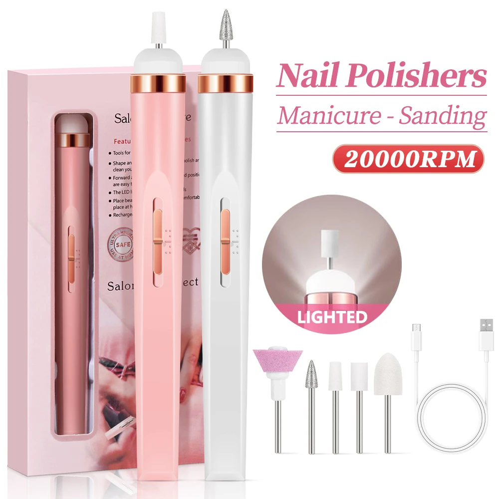Multiple Gears Electric Nail Polish Drill Machine With Light Portable With Battery Electric Manicure Art Tools For Gel Remover