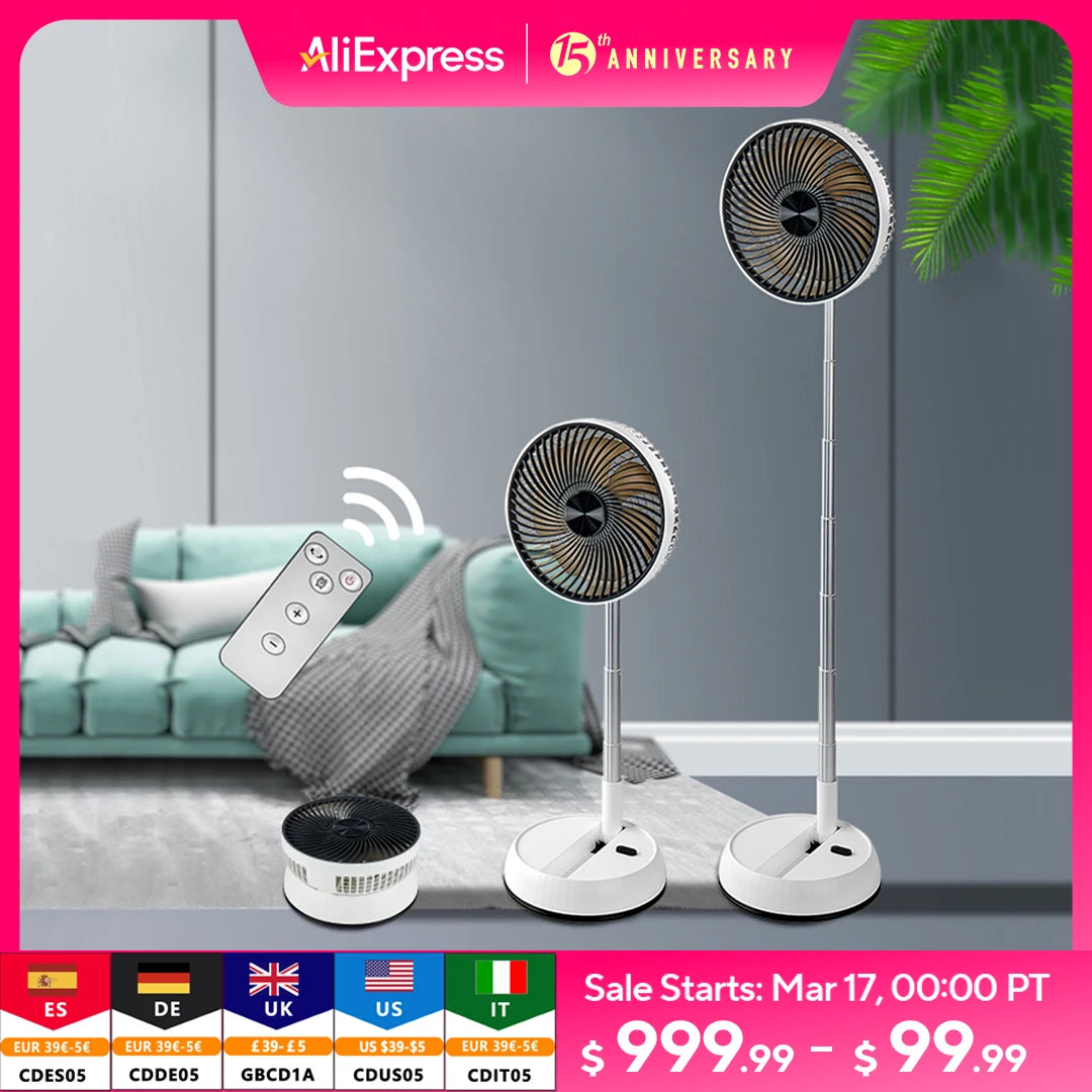Portable Folding Fan 6000mAh USB Remote Control Air Cooler Silent Rechargeable Wireless Floor Standing Fan For Outdoor Home